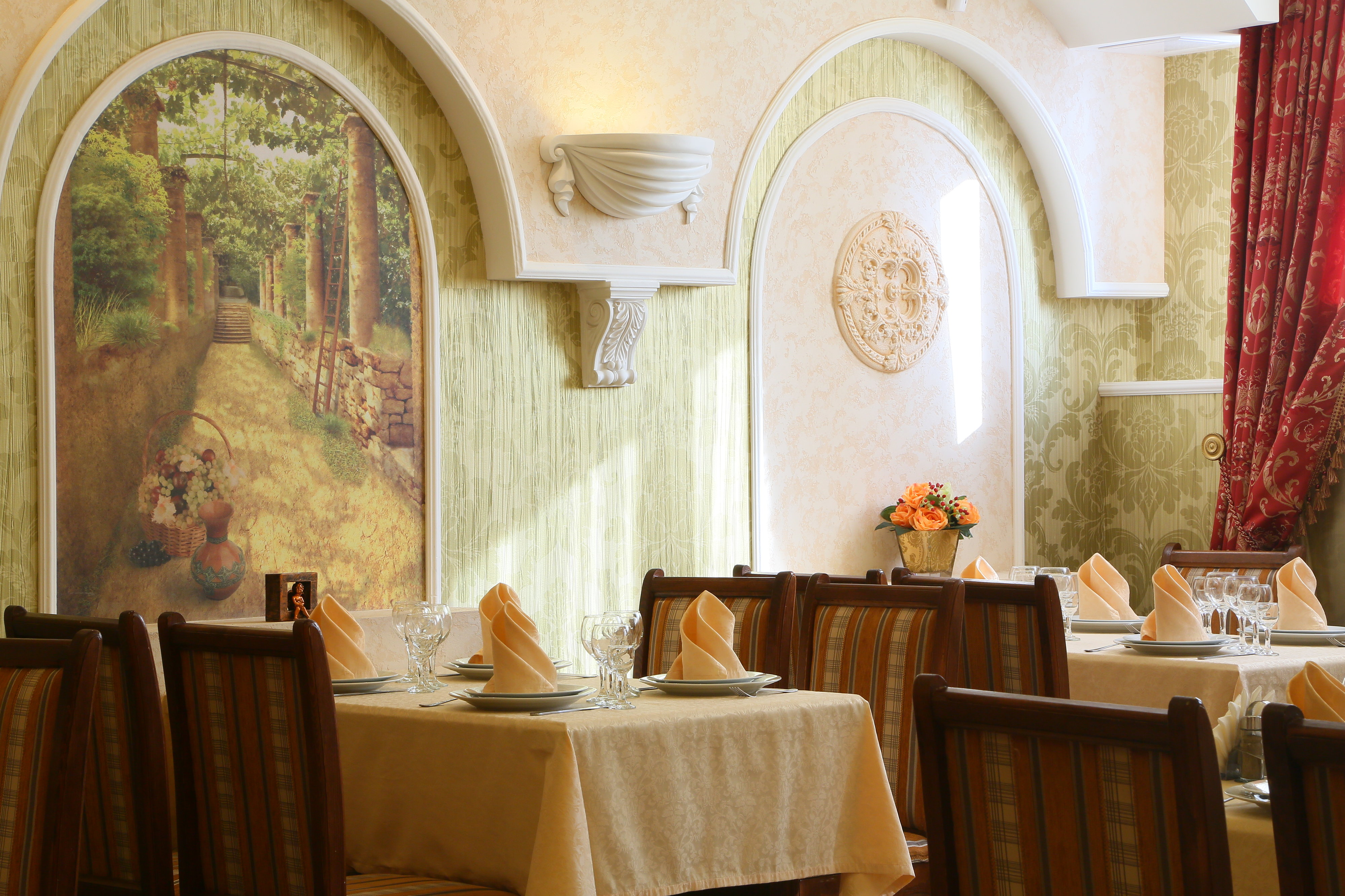 У нас работает Wi-Fi, организован бранч, оказывают услуги по кейтерингу, доступны парковка и банкетный зал - всё к вашим услугам. Кроме того, здесь вы можете отдохнуть за кальяном.